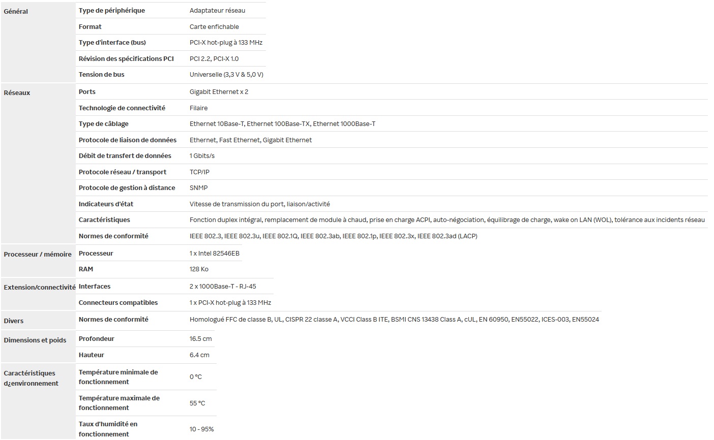 Adaptateur réseau - PCI-X - dual Gigabit Ethernet