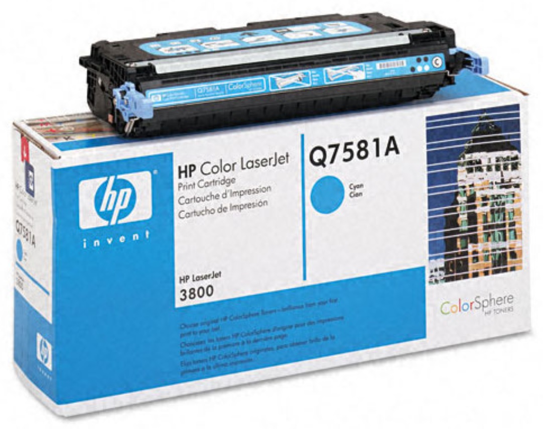 Toner CYAN HP ORIGINAL POUR HP COLOR LASERJET 3800 CP3505 Q7581A