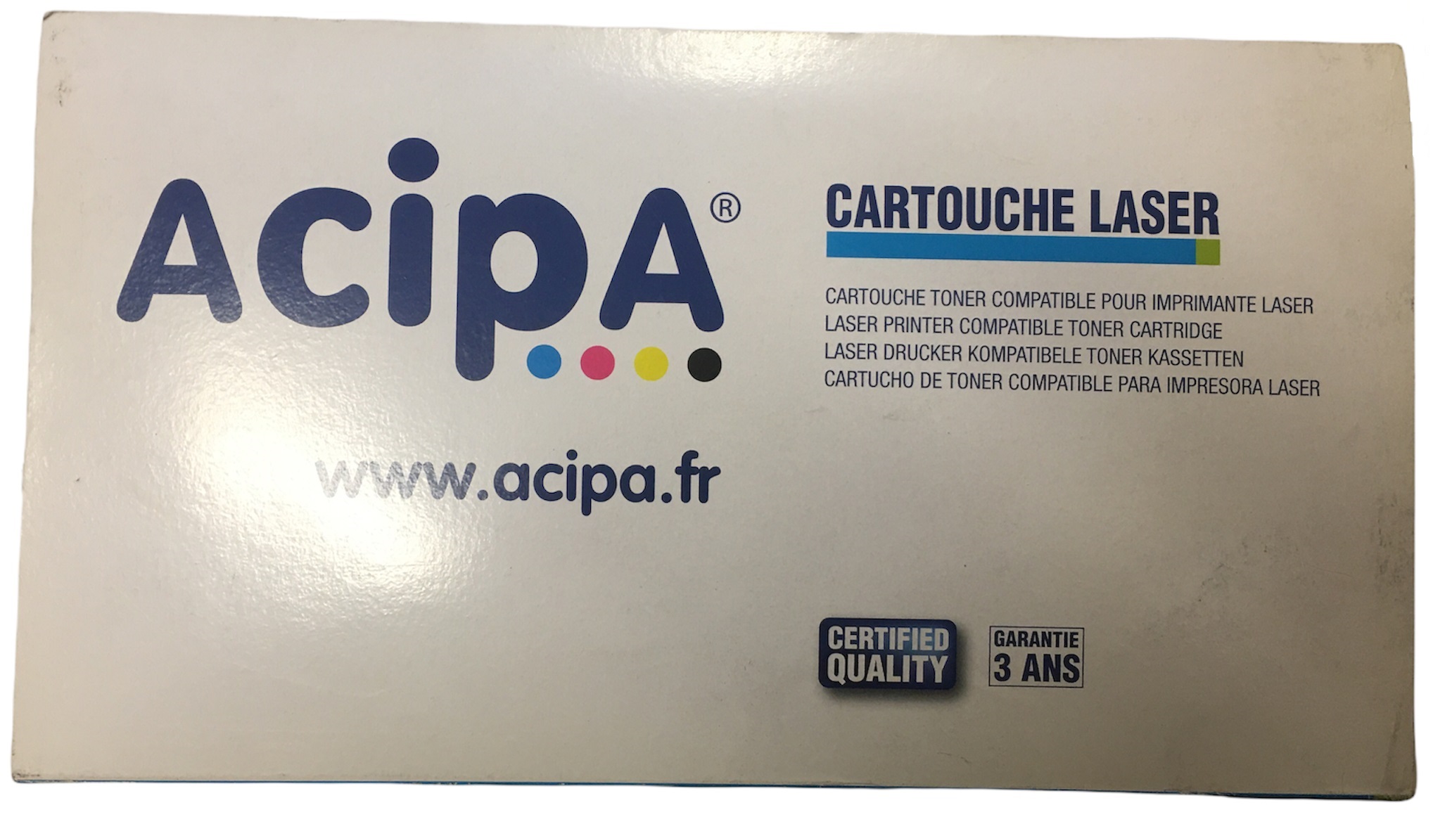 Cette cartouche remanufacturée de la marque ACIPA a des propriétés techniques équivalentes à l’original. Son coût d'impression à la page est plus bas que l'original ; c'est l'idéal pour faire des économies.