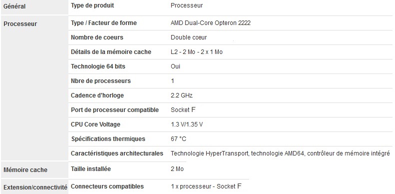 AMD Opteron 2222Â Dual Core 3 GHz Socket F 0.09 micron