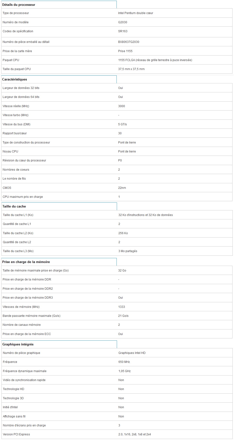 CPU Intel Pentium G2030 3.0 GHz dual core 3 Mo LGA 1155 SR163