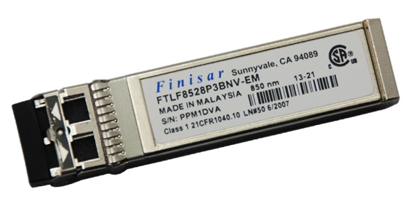 Les émetteurs-récepteurs SFP + FTLF8528P3BNV de Finisar sont conçus pour être utilisés dans des connexions Fibre Channel jusqu'à un débit de données de 8,5 Gb / s par rapport à la fibre multimode.